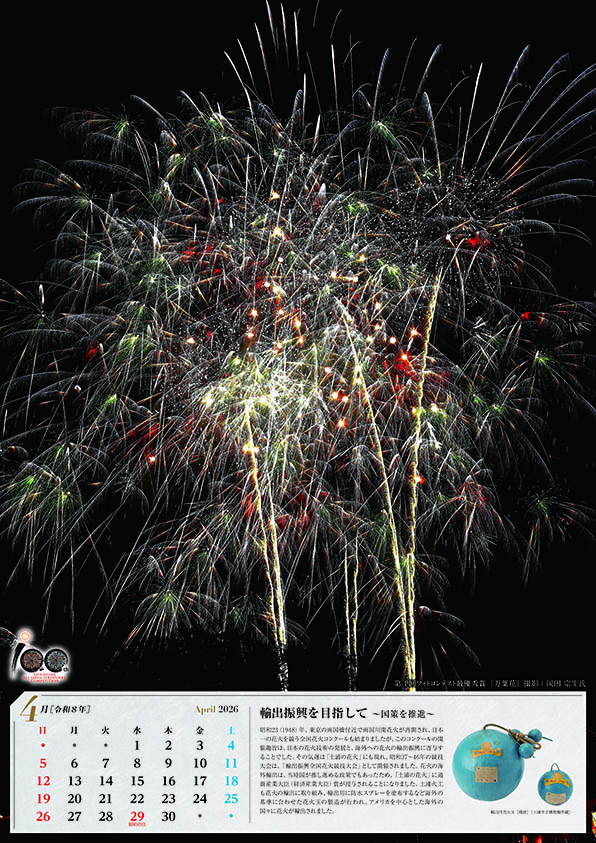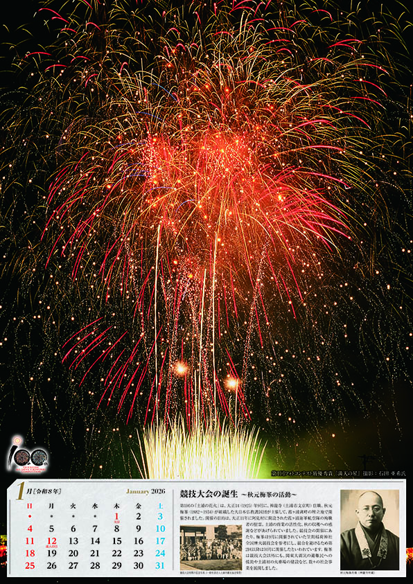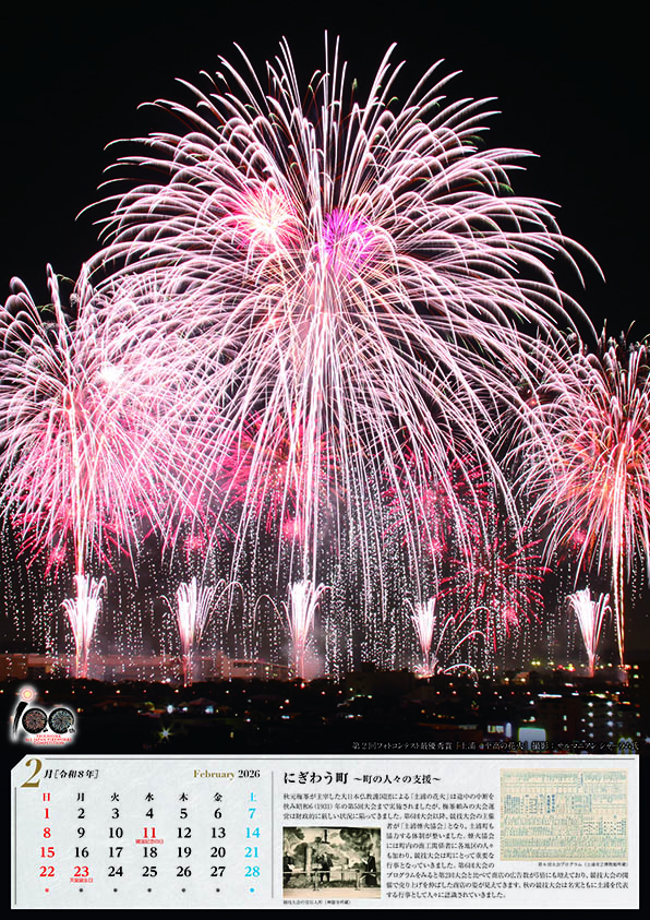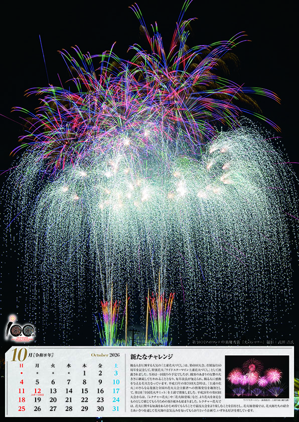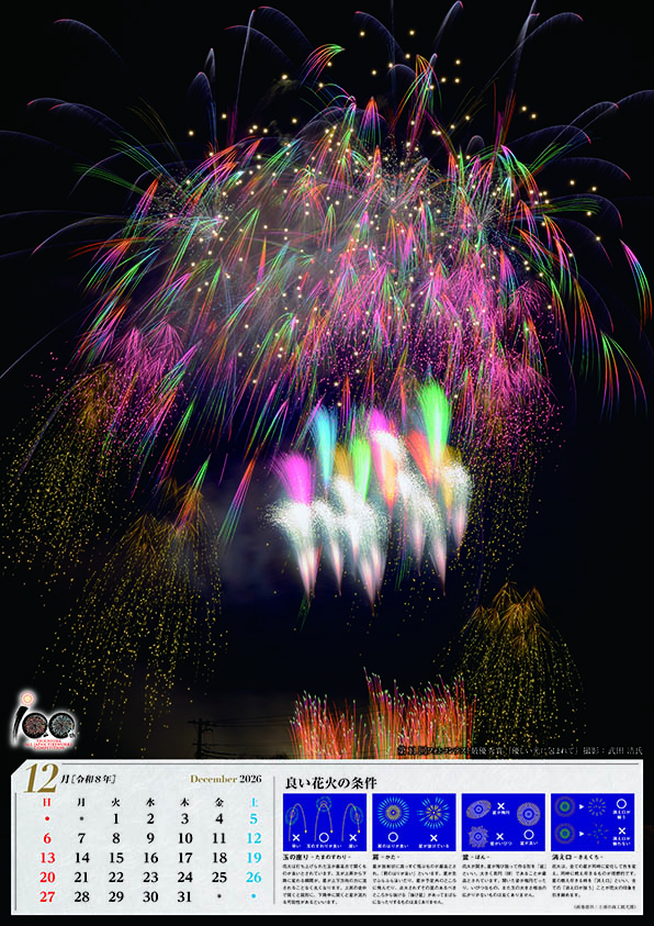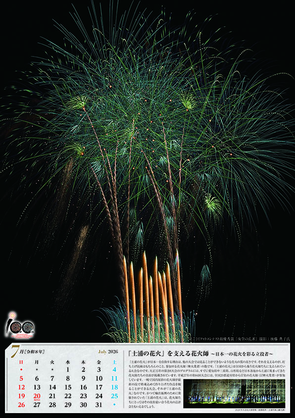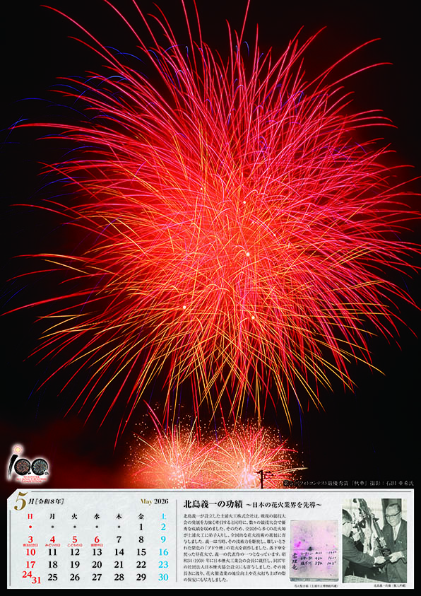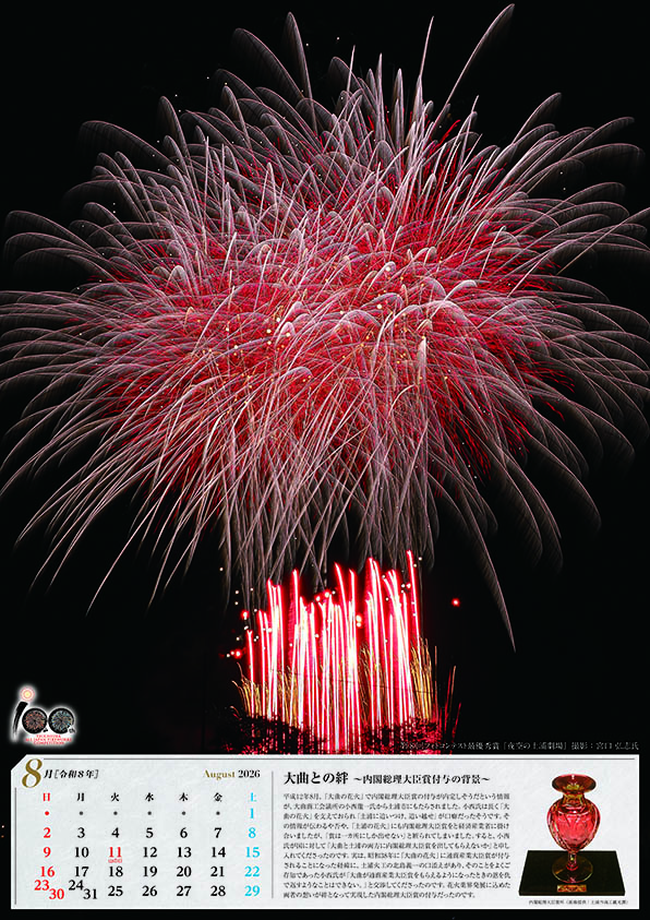 日本三大花火大会の一つである「土浦全国花火競技大会」と、弊社のカレンダーづくりのノウハウがコラボレートした新商品です。今年は100周年を記念した特別仕様になっております。